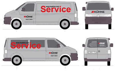| ...Ihr Signet auf Briefmarken oder auf einer Bannerwerbung, Ihre Anzeigenschaltung in der Fachpresse oder auf Ihren firmeneigenen Fahrzeugen? Zur Sicherung Ihres Erscheinungs- bildes wie auch Ihrer Marke ist ein permanentes Bewerben über verschiedene Medien wichtig. Aus diesem Grund wurde die Außengestaltung von verschiedenen Volkswagen T5 für die K&K Sondermaschinen und Förderanlagenbau GmbH wieder aufgenommen. Es konnte eine Form mit einer Farbvariante gefunden werden, mit der alle Beteiligten Frieden schließen konnten. < < < |